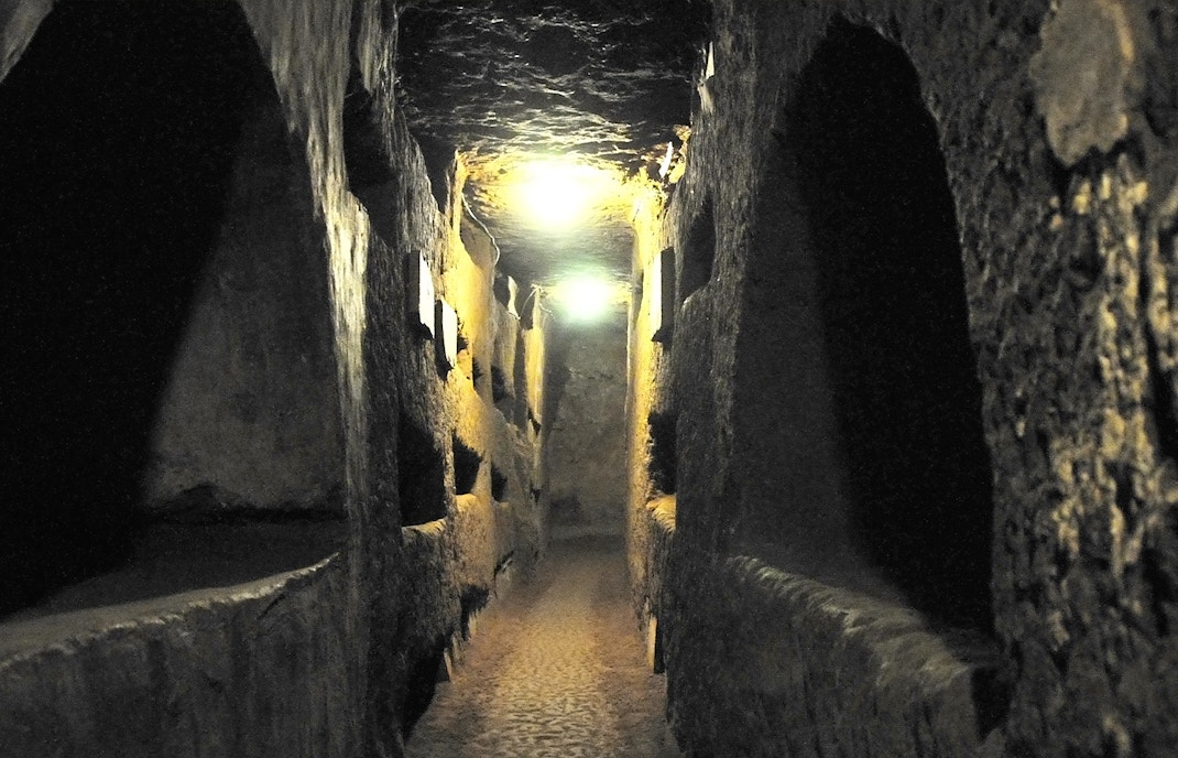 - Kunst & arkitektur: Der er fresker, inskriptioner og Sankt Agnes' grav med kamre, der er hugget ud i vulkansk klippe.