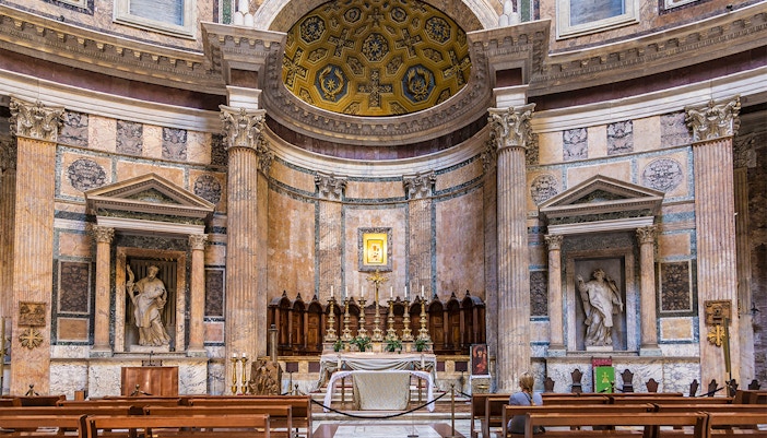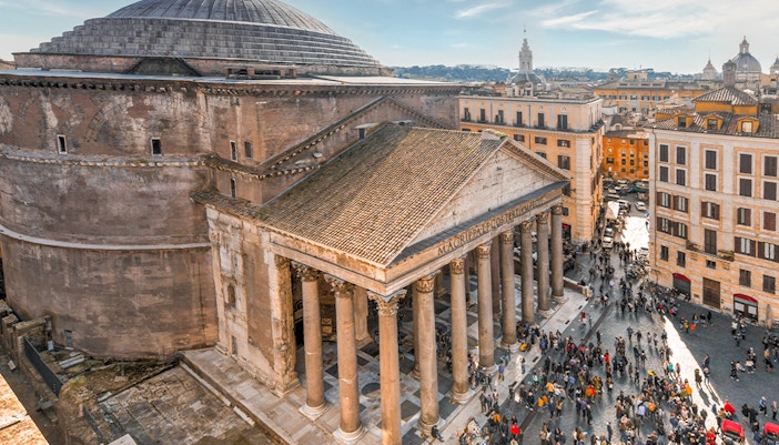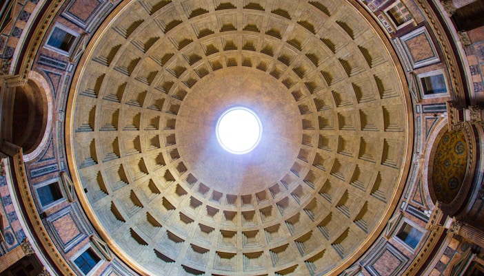 Il Pantheon così come si presenta è il risultato di una terza ricostruzione: la prima volta, il Pantheon di Agrippa bruciò nell'80 d.C.. Quando Domiziano la ricostruì, fu nuovamente sventrata da un incendio nel 110 d.C.. Il Pantheon dell'imperatore Adriano è quello che vediamo oggi, dopo la sua terza resurrezione.