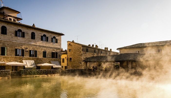 Você precisa de um spa? Siga para Bagno Vignoni, um pequeno vilarejo com várias fontes termais naturais. Você não paga nada para usar essas fontes termais.