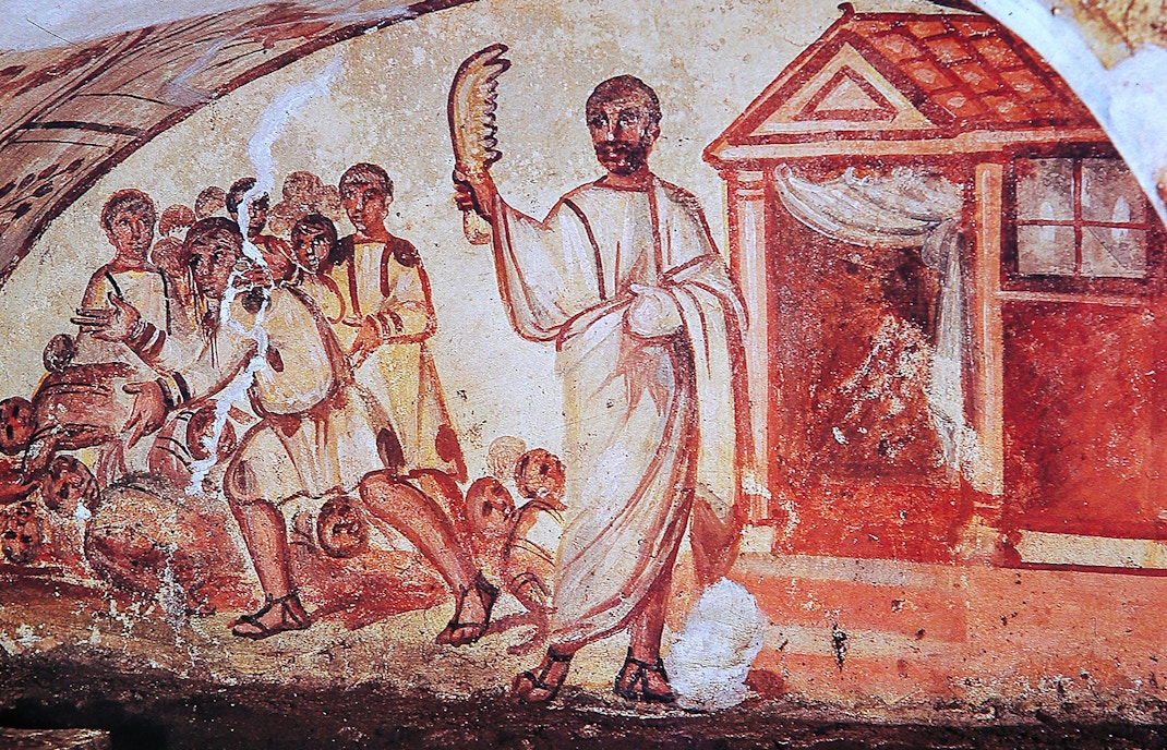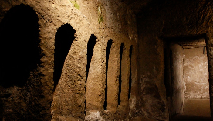 În secolul al II-lea d.Hr., catacombele au apărut ca locuri de înmormântare din cauza legilor restrictive ale orașului privind înmormântările. Primii creștini, care căutau un loc sigur pentru a-și onora persoanele dragi decedate și a-și practica credința, au început să folosească aceste tuneluri subterane ca locuri de înmormântare. Acestea au devenit nu numai un loc de odihnă finală pentru credincioși, ci și spații pentru adunări comune, inclusiv banchete funerare și servicii memoriale. Aceste morminte prezintă lucrări de artă și inscripții unice care descriu credința creștină din această perioadă.