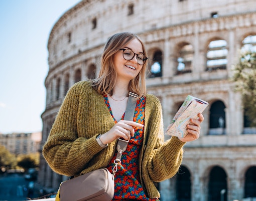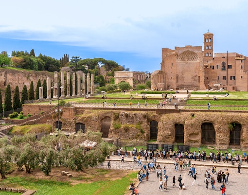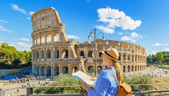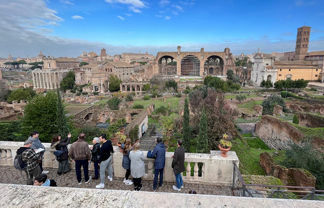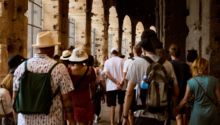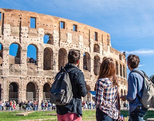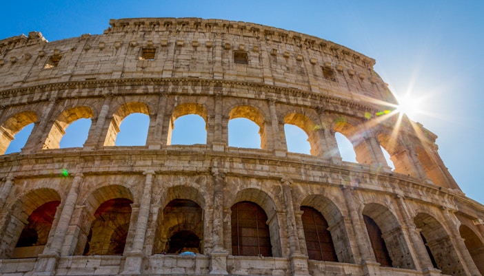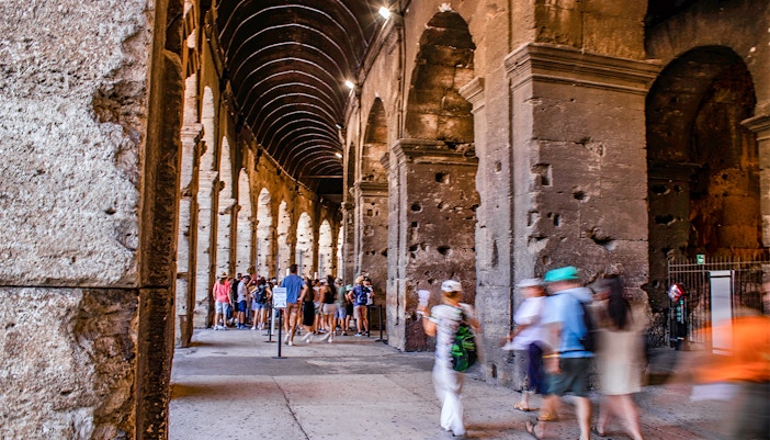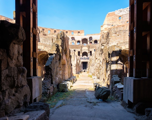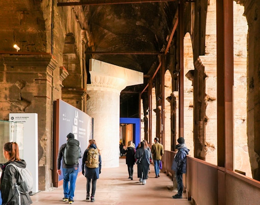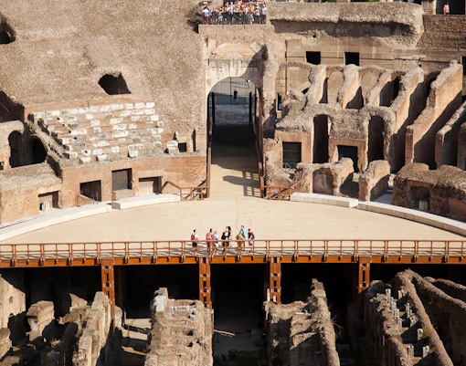 Klättra upp till de övre våningarna och njut av panoramautsikten över Colosseum interior och Rom i övrigt.