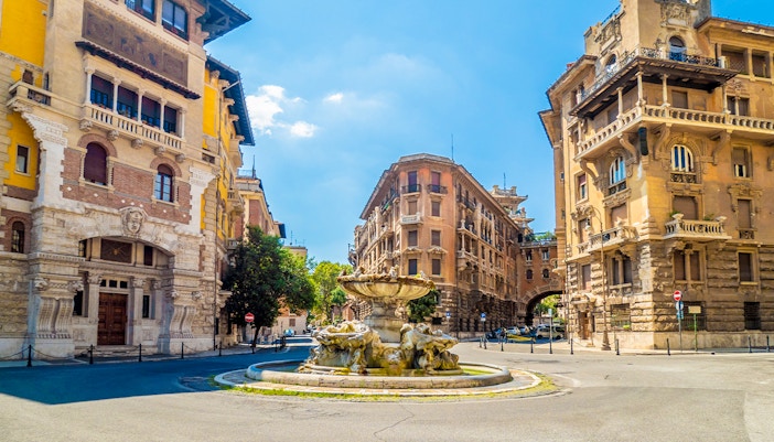 Bu tuhaf bölgede Art Nouveau, Gotik ve Barok tarzların rüya gibi dünyasına adım atın. Kemerli geçitler, freskler ve gerçeküstü bir kurbağa fıskiyesi burayı Roma'nın en fotojenik gizli mücevherlerinden biri haline getirmektedir.